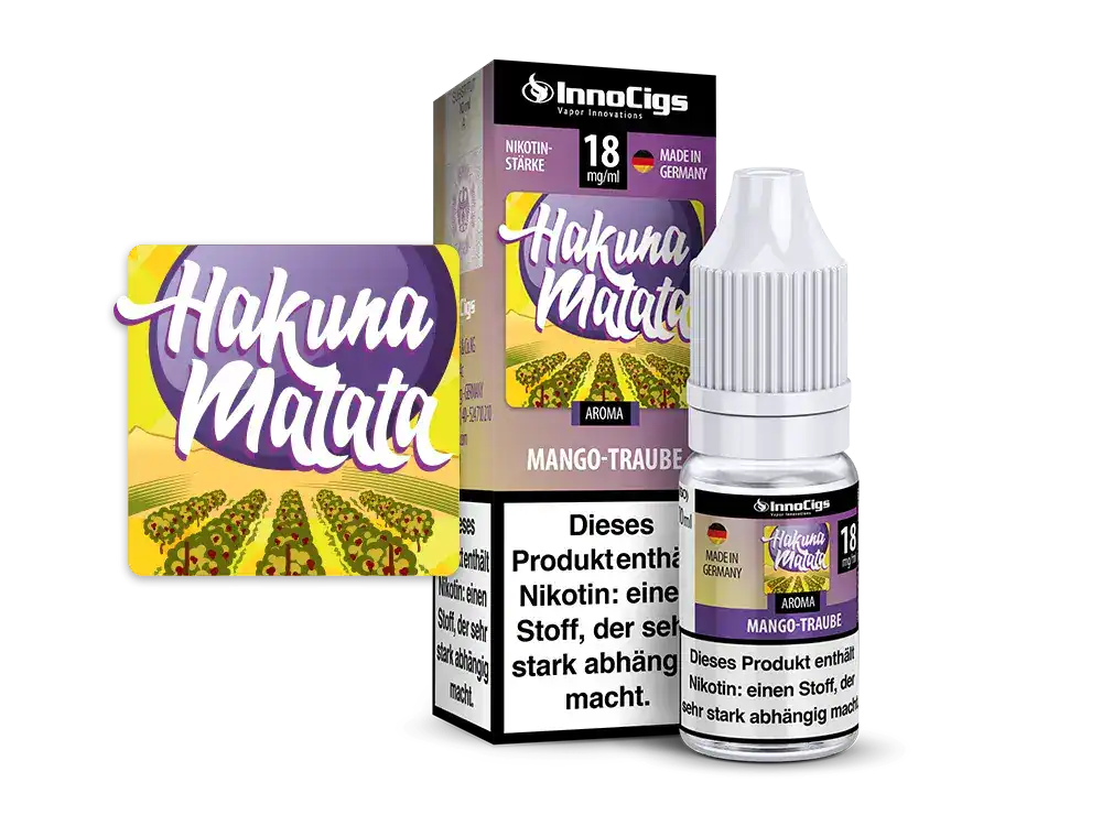 Entdecke auch die anderen aufregenden Aromen von Innocigs und finde deine neuen Lieblinge! Bestelle noch heute dein Innocigs Aroma Hakuna Matata Traube in unserem Shop und genieße die Vielfalt der fruchtigen Aromen!