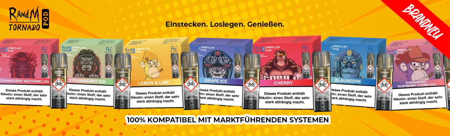RandM Tornado Pods bieten eine große Auswahl an vorbefüllten Geschmacksrichtungen mit 20 mg/ml Nikotinsalz – von fruchtig über süß bis erfrischend. Kompatibel mit RandM Tornado und Elfbar ELFA Geräten, sind sie die ideale Wahl für unkompliziertes, intensives Dampfen ohne Nachfüllen.